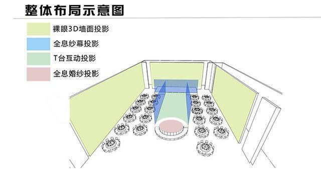 全息宴會廳是利用了全息投影技術打造的具有沉浸式舞美體驗效果的新型宴會廳,其主要以裸眼3D、舞臺全息、墻面(環(huán)幕)投影、地面互動投影和婚紗投影等幾個單元構成。