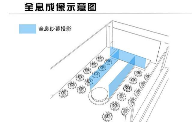 紗幕具有良好的透視性,離遠處看仿佛是在空氣中成像,結合宴會廳270度立體成像的3D效果,能夠實現(xiàn)雙重視覺效果。在全息宴會廳中內,全息成像可用于大型舞臺演出、各類發(fā)布會、喜宴等等。